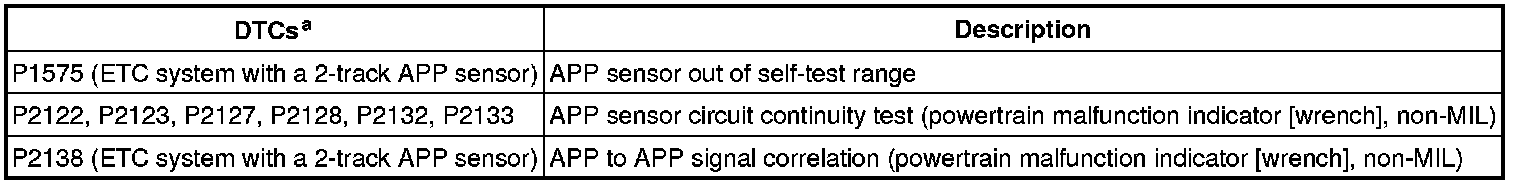 a ETC illuminates or displays a message on the message center immediately; MIL illuminates after 2 driving cycles ETC System With A 2-Track APP Sensor Failure Mode And Effects Management