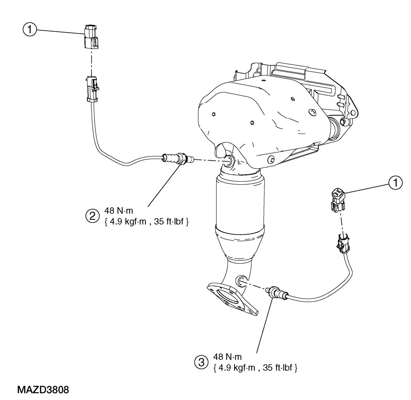 HEATED OXYGEN SENSOR (HO2S) AND CATALYST MONITOR SENSOR REMOVAL/INSTALLATION - 2.5L