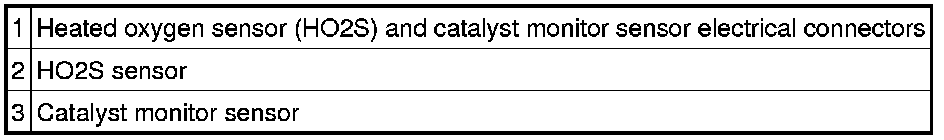 2. Disconnect the heated oxygen sensor (HO2S) and the catalyst monitor sensor electrical connectors.