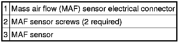 1. Disconnect the mass air flow (MAF) sensor electrical connector.
