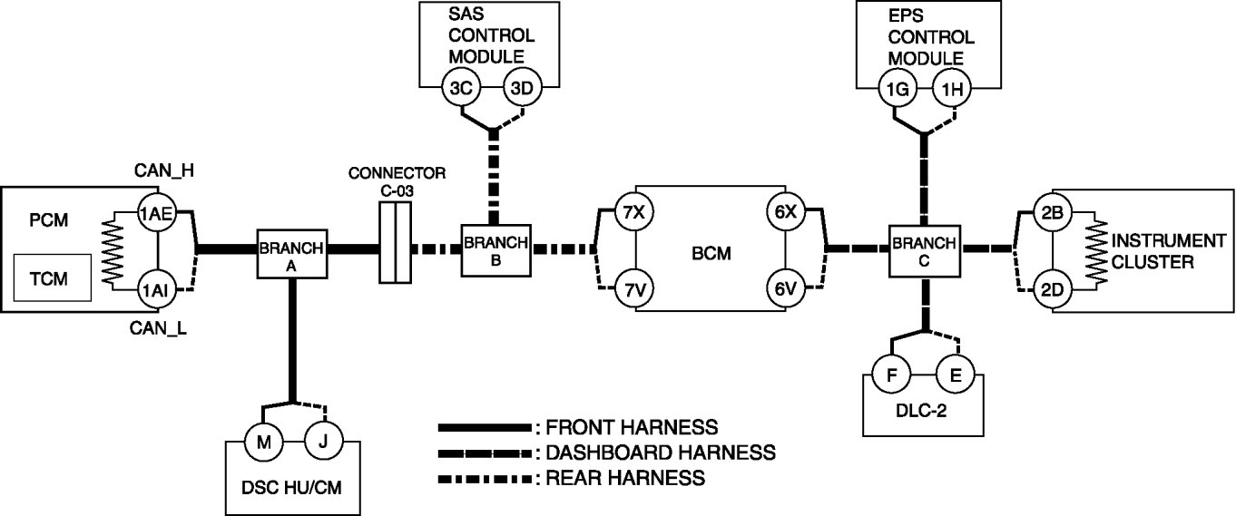 - Short circuit in wiring harness between CAN system-related module CAN_L and CAN_H lines