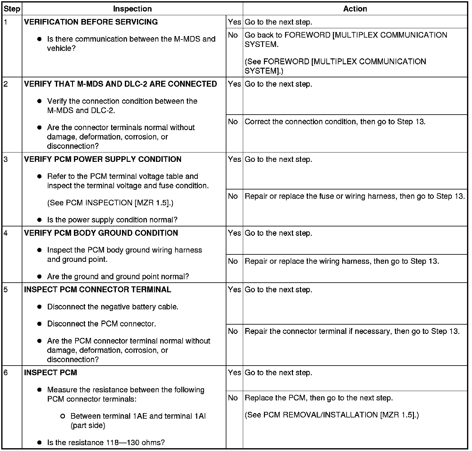 - Possible causes of communication errors between the M-MDS and vehicle include communication circuit interruption due to an open circuit in the CAN communication wiring harness, or poor contact of connector terminals, or a BUS OFF condition due to a short circuit in the CAN communication wiring harness.