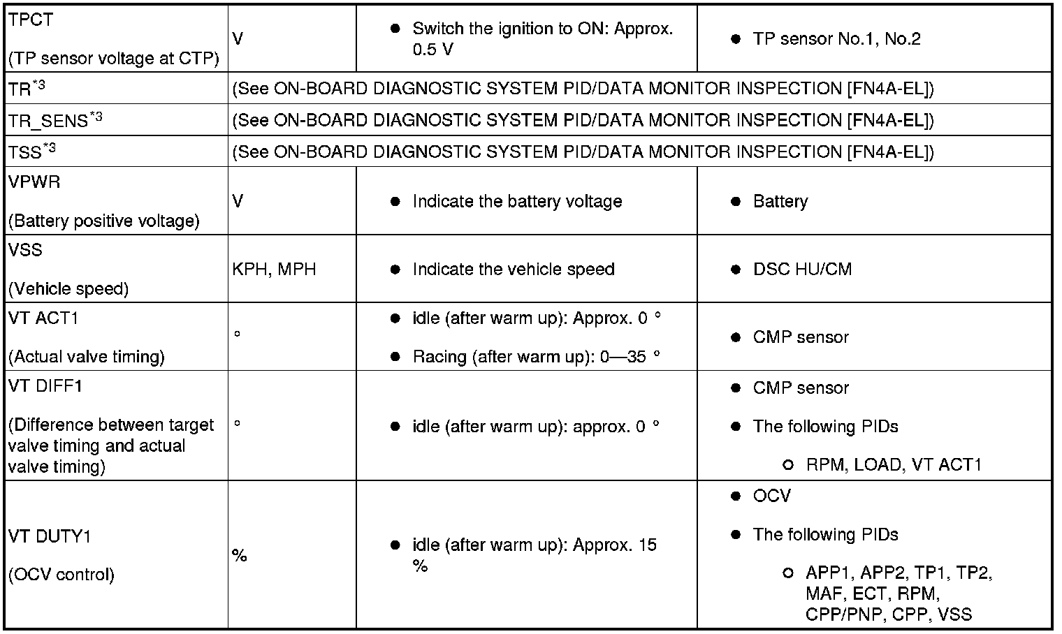 - PIDs for the following parts are not available on this model. Go to the appropriate part inspection.