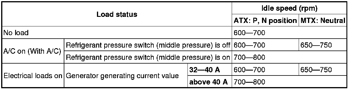 - Excludes temporary idle speed drop just after the loads are turned on.