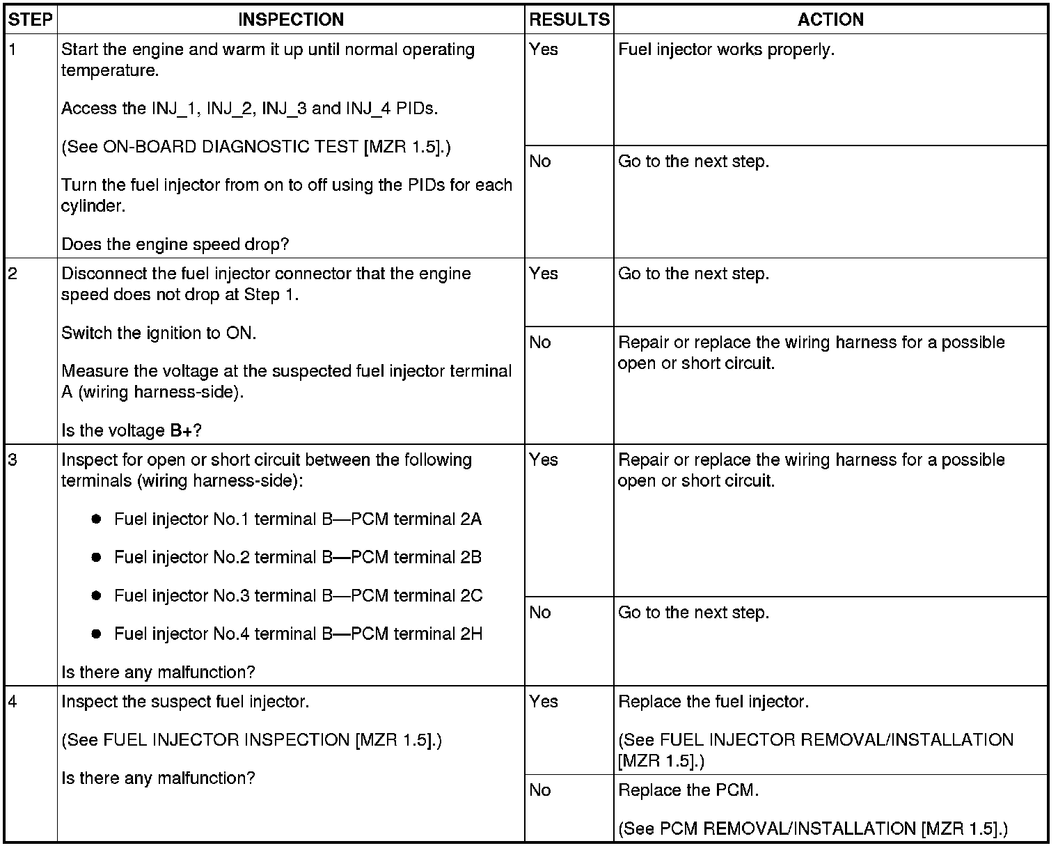 ENGINE CONTROL SYSTEM OPERATION INSPECTION [MZR 1.5]