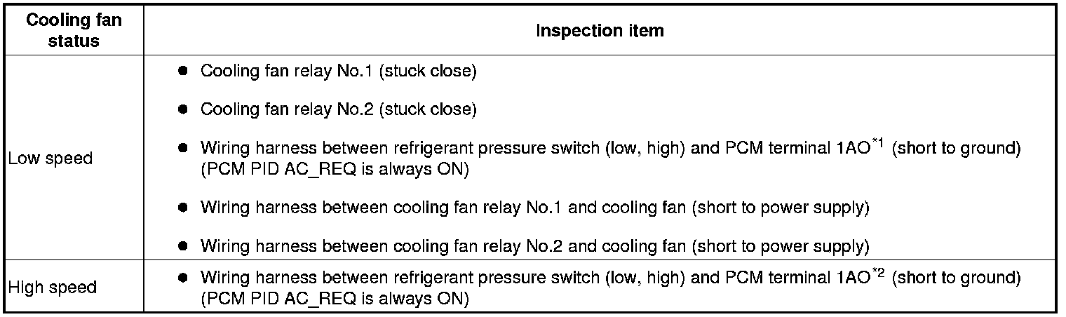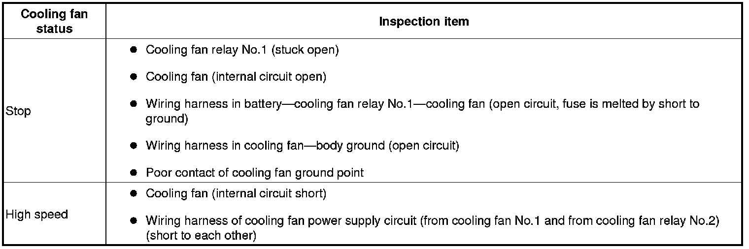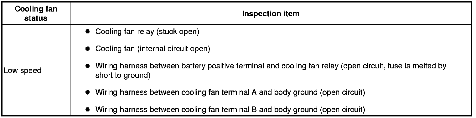 - If the operation could not be confirmed, inspect for the following based on cooling fan status: