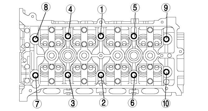 Tighten the cylinder head installation bolts in three steps in the order shown in the figure.