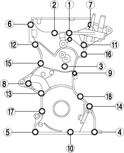 Tighten the engine front cover installation bolts in the order shown in the figure.