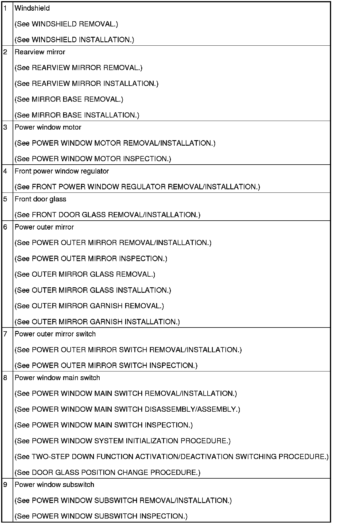GLASS/WINDOWS/MIRRORS LOCATION INDEX