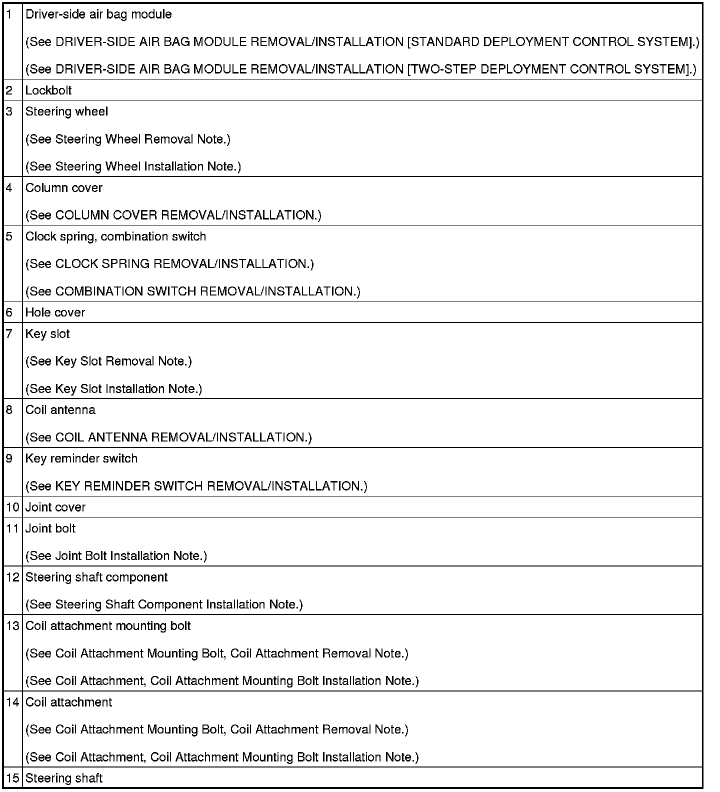Steering Wheel Removal Note