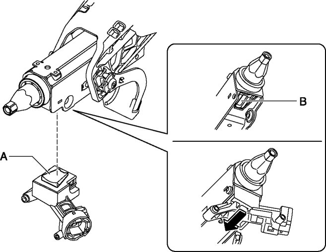 1. Assemble area A of the coil attachment to area B of the steering shaft, and press the coil attachment in the direction of the arrow in the figure until it contacts the steering shaft.