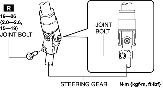 2. After temporarily install the joint bolt to the intermediate shaft joint, verify that the joint bolt is installed to the groove of the steering gear.