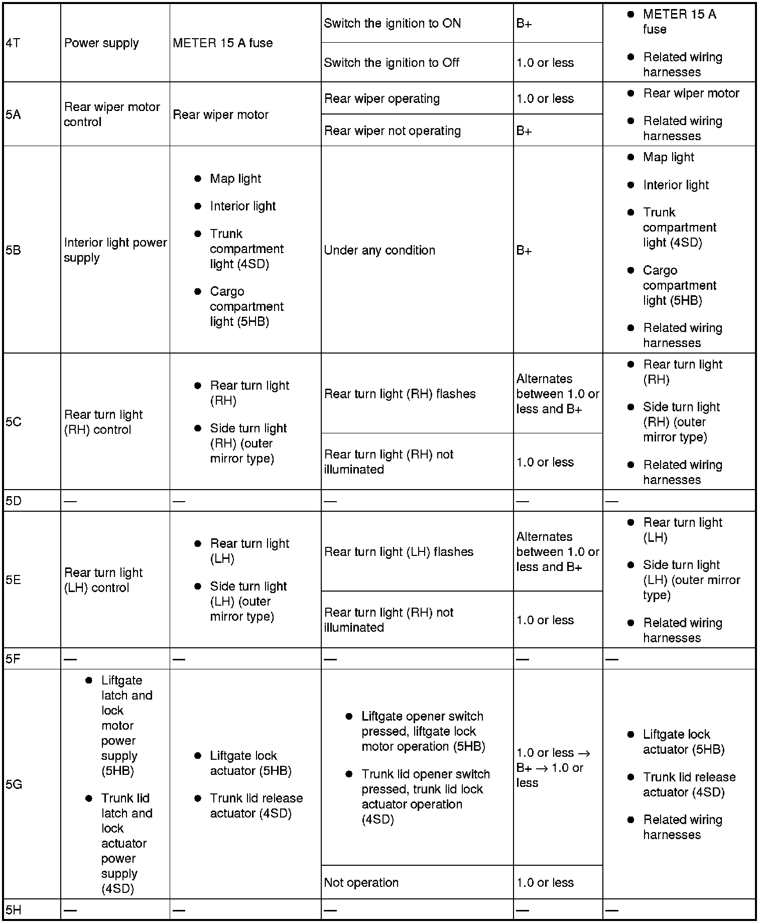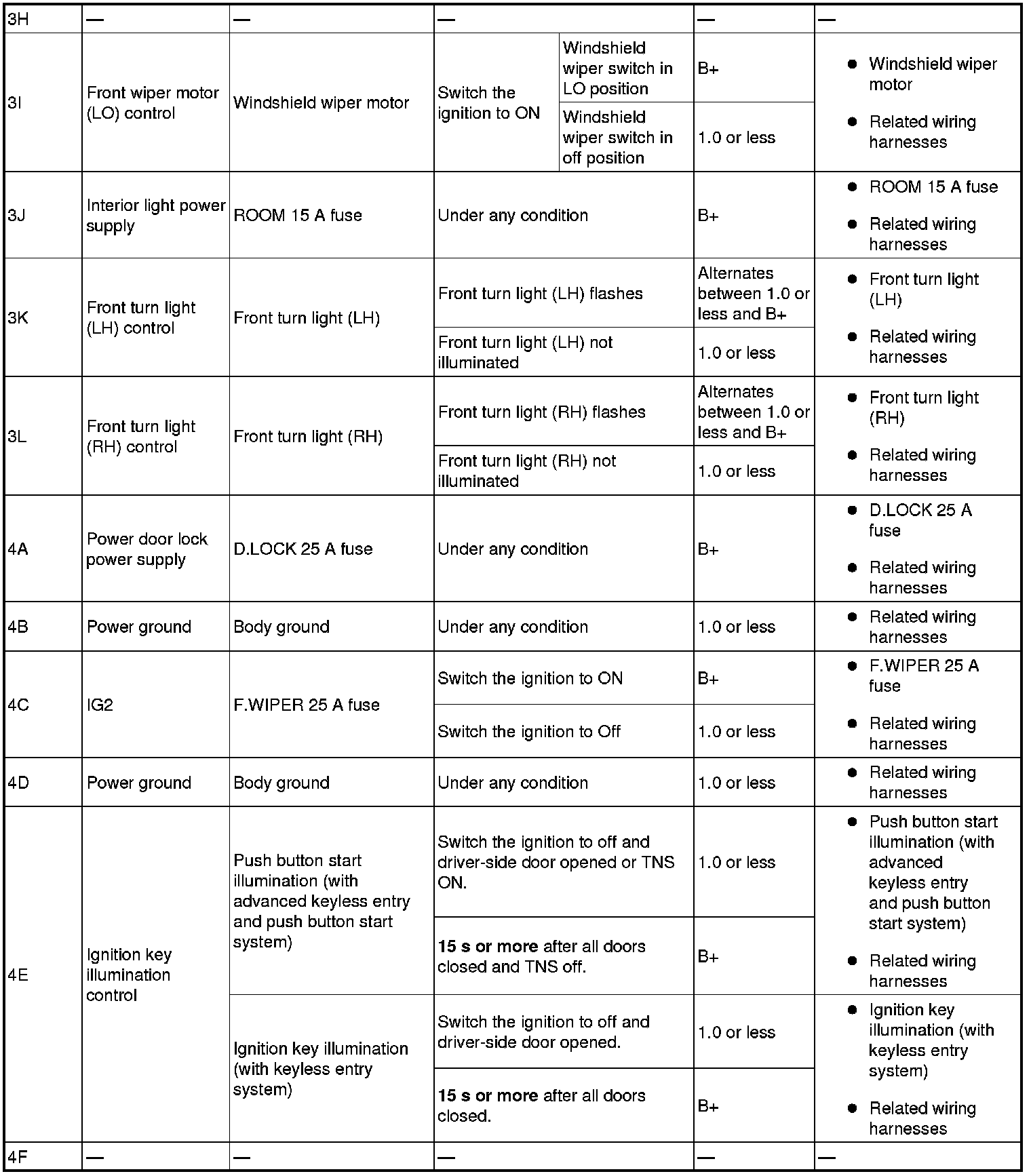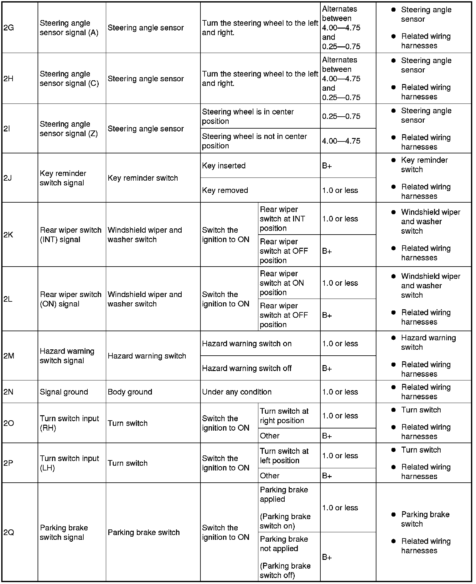 - Rear door switch (RH) signal: 6K (+) -> body ground (-)