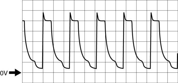 - Oscilloscope setting: 1 V/DIV (Y), 200 microsecond/DIV (X), DC range