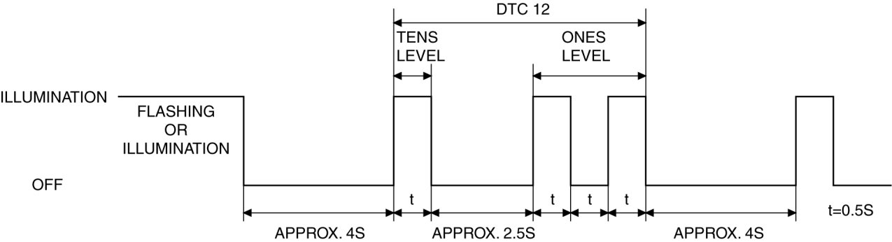 - A DTC is displayed ten times by switching the ignition ON once.
