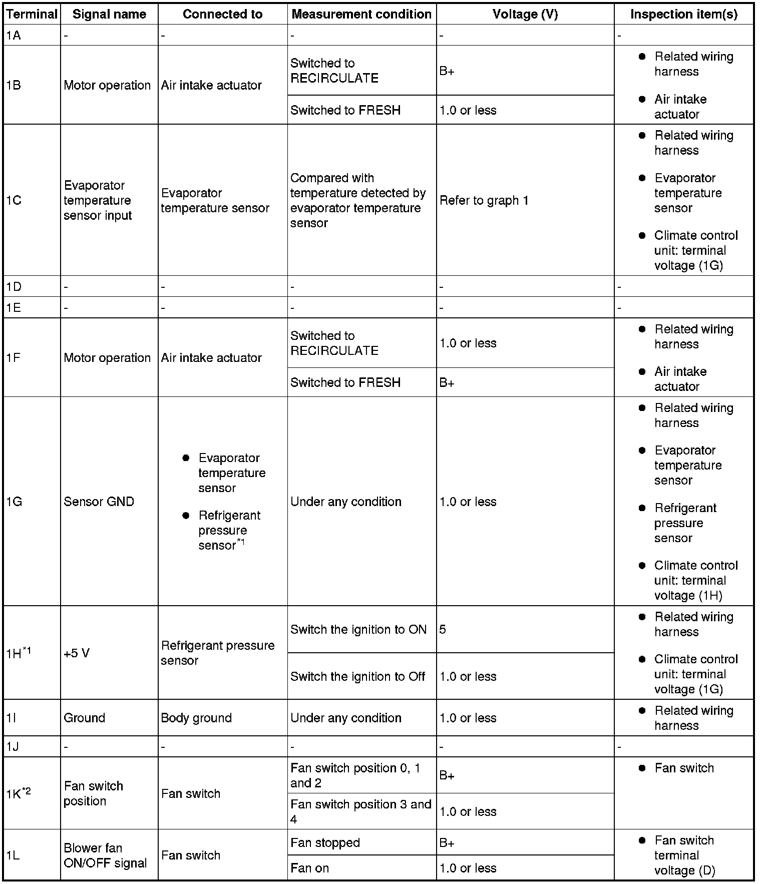 - If the parts under "Inspection item(s)" are normal, replace the climate control unit.