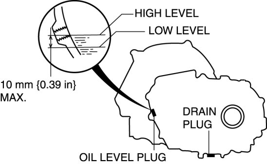 7. Add the specified amount and type of oil through the oil level plug hole until the level reaches the bottom of the oil level plug hole. Manual transaxle oil