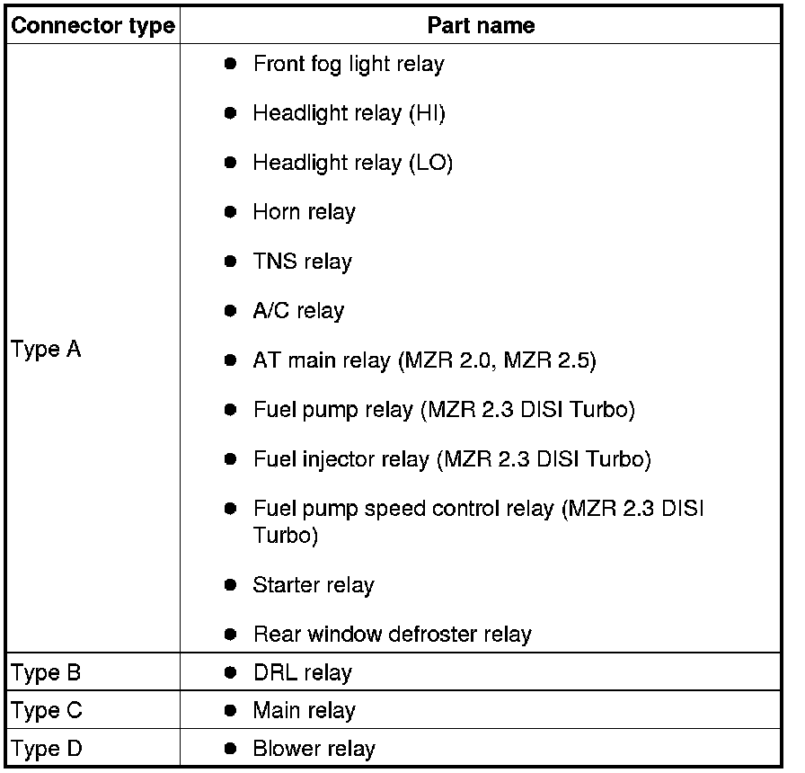 RELAY INSPECTION [MZR 2.0, MZR 2.5, MZR 2.3 DISI Turbo]