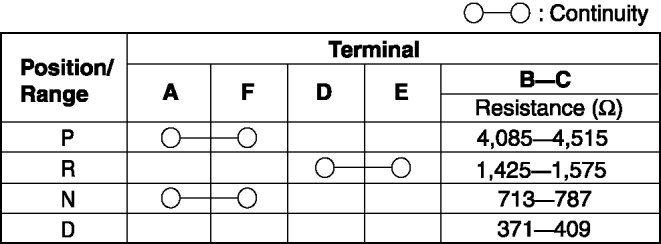 b. Verify that the starter operates only when the ignition is switched to START with the selector lever in the P position or the N position.