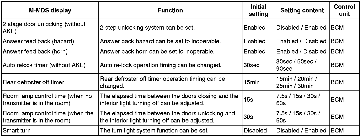 Locking all doors when gear selector is changed (except to P range). Unlocking all doors when ignition off.