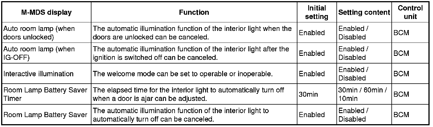 3. Select menu in the "Personality" , "Interior lighting", "Washer/Wiper", "Security" or "Power Door Locks".