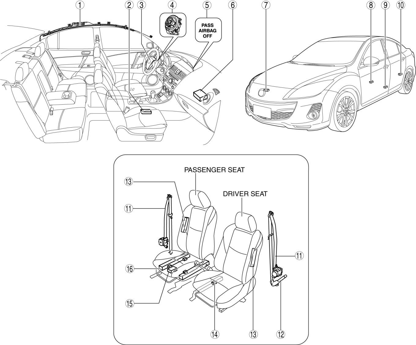 AIR BAG SYSTEM LOCATION INDEX [TWO-STEP DEPLOYMENT CONTROL SYSTEM]