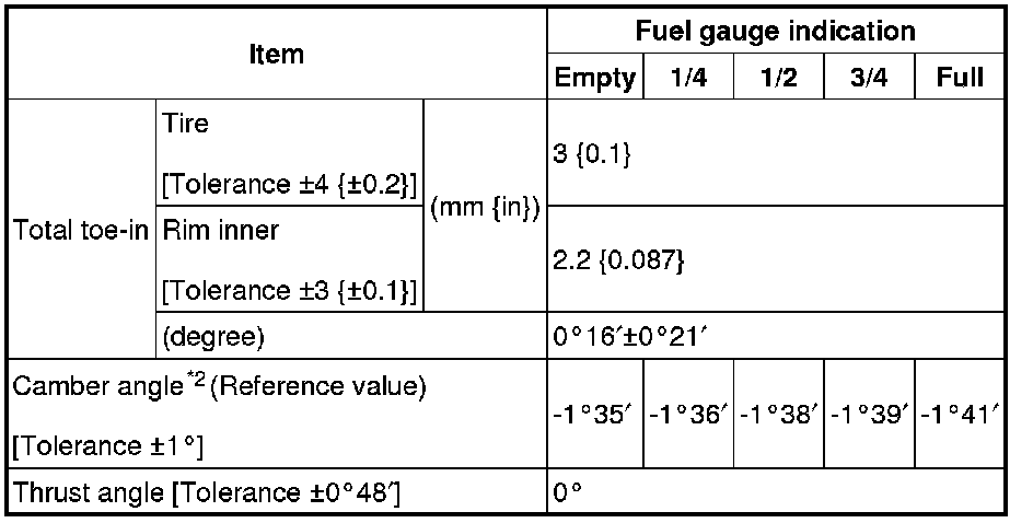 Rear wheel alignment (Unloaded)*1 [MZR 2.0, SKYACTIV-G 2.0, MZR 2.5]