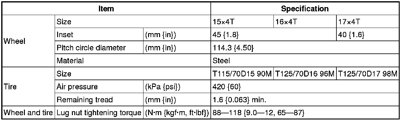 WHEEL AND TIRE SPECIFICATION