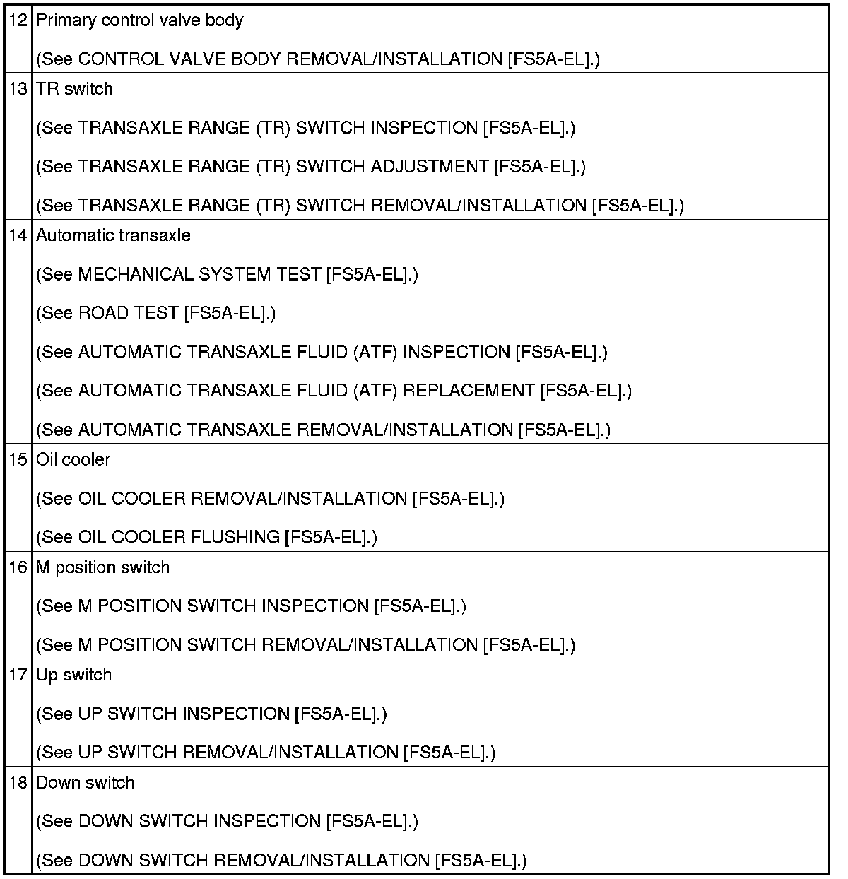 AUTOMATIC TRANSAXLE LOCATION INDEX [FS5A-EL]