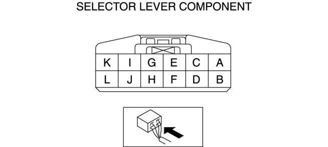 2. Measure the voltage between the selector lever component terminals.