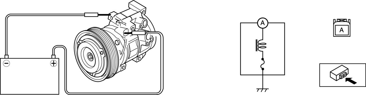 1. Connect battery to terminal A of magnetic clutch and ground to A/C compressor body.