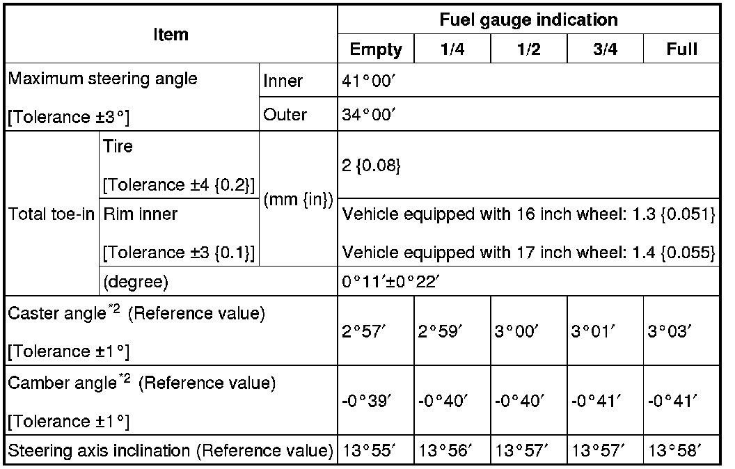 Front wheel alignment (Unloaded)*1