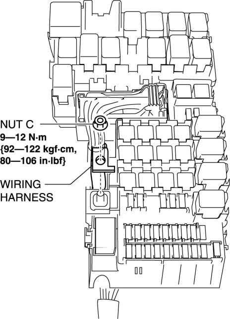 12. Install nut C and the wiring harness.