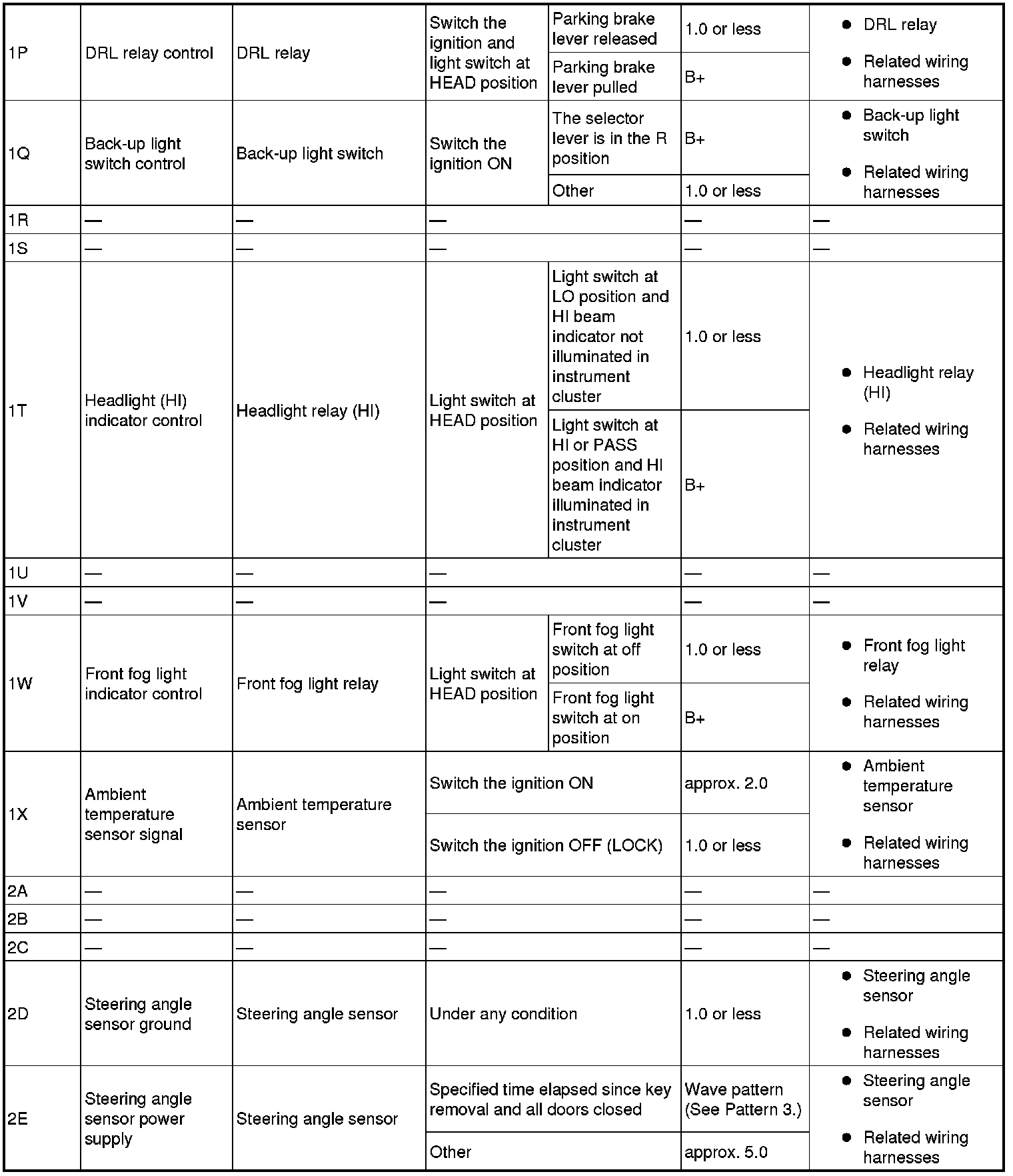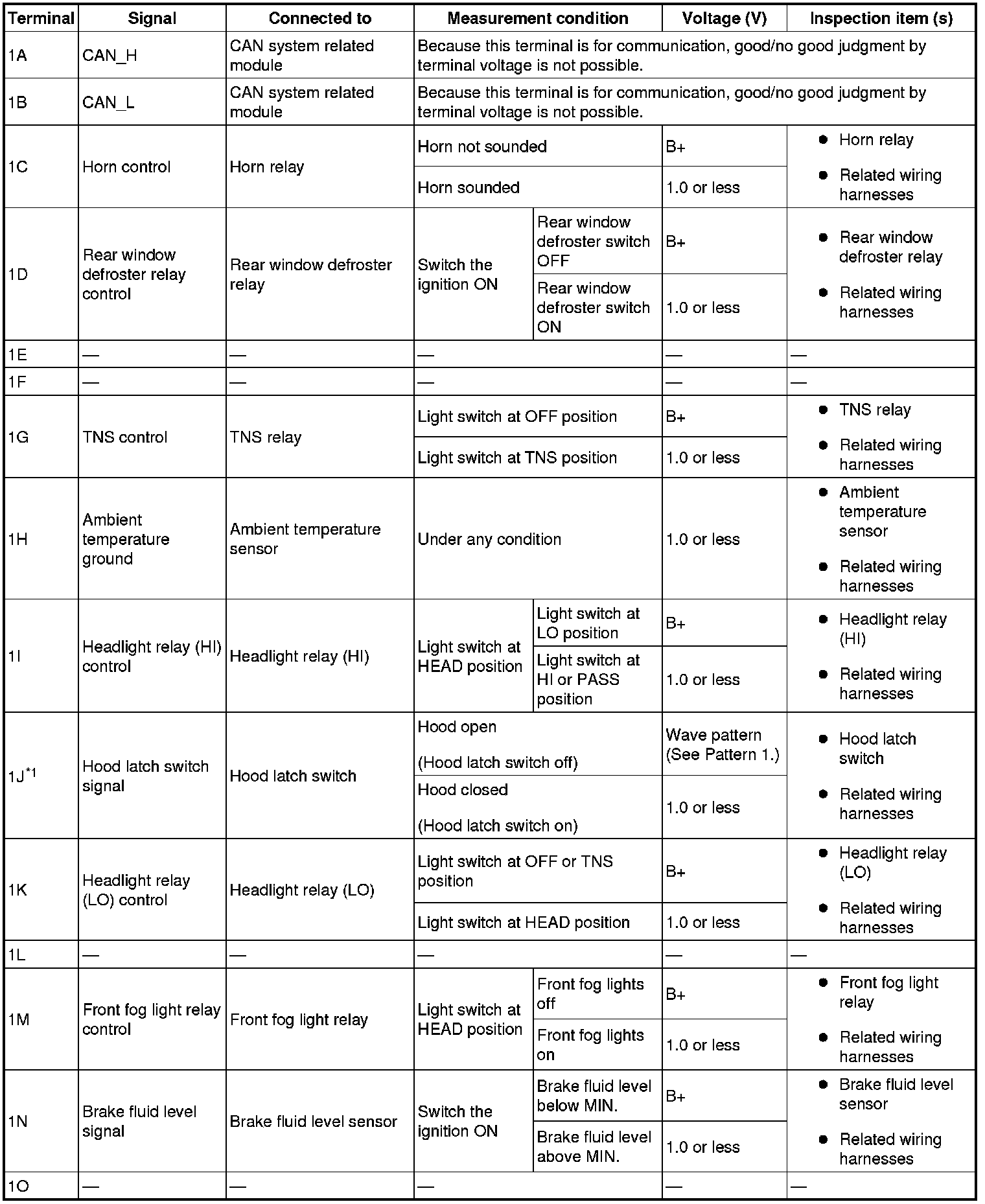 - Hood latch switch signal: 1J (+) -> body ground (-)