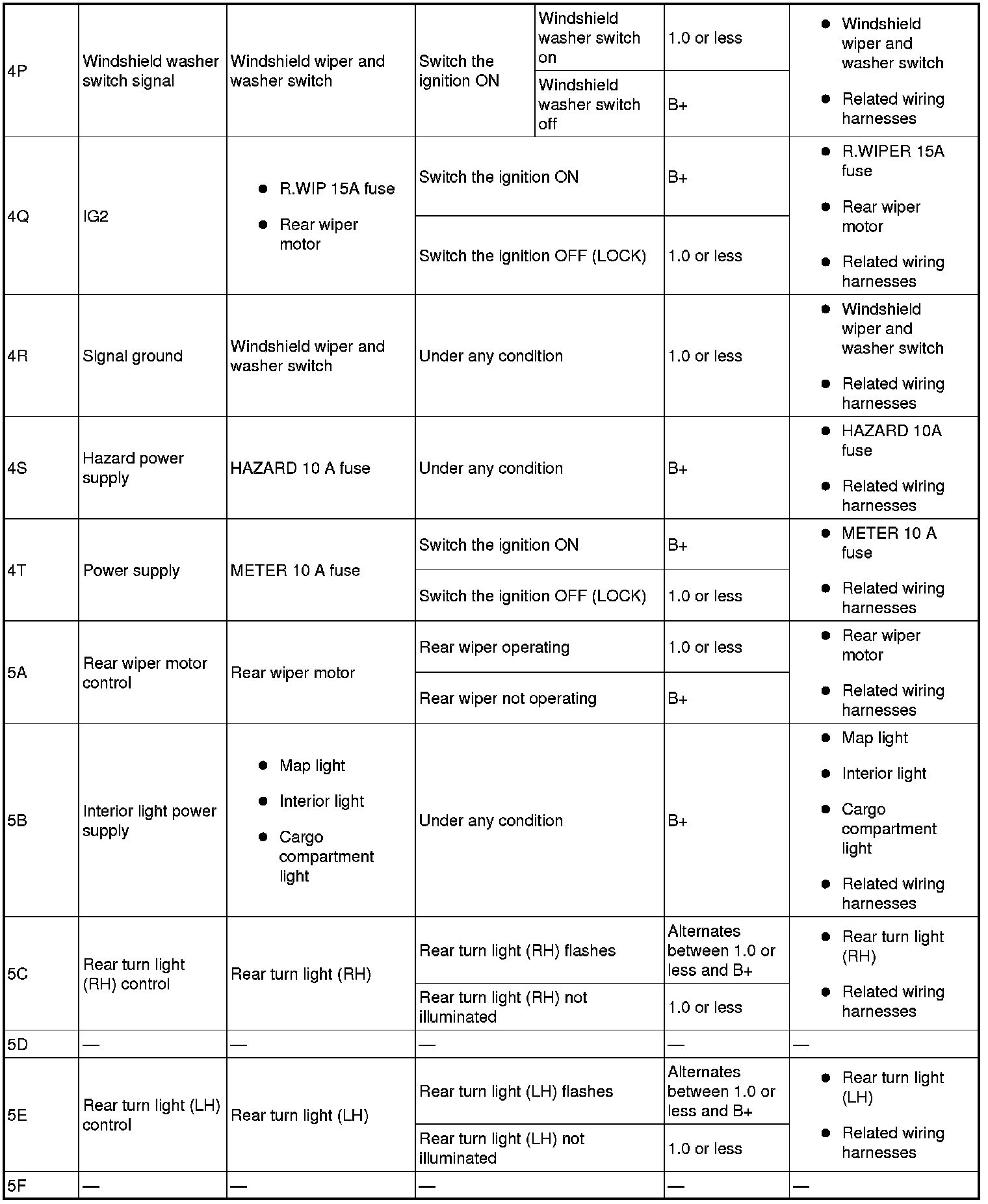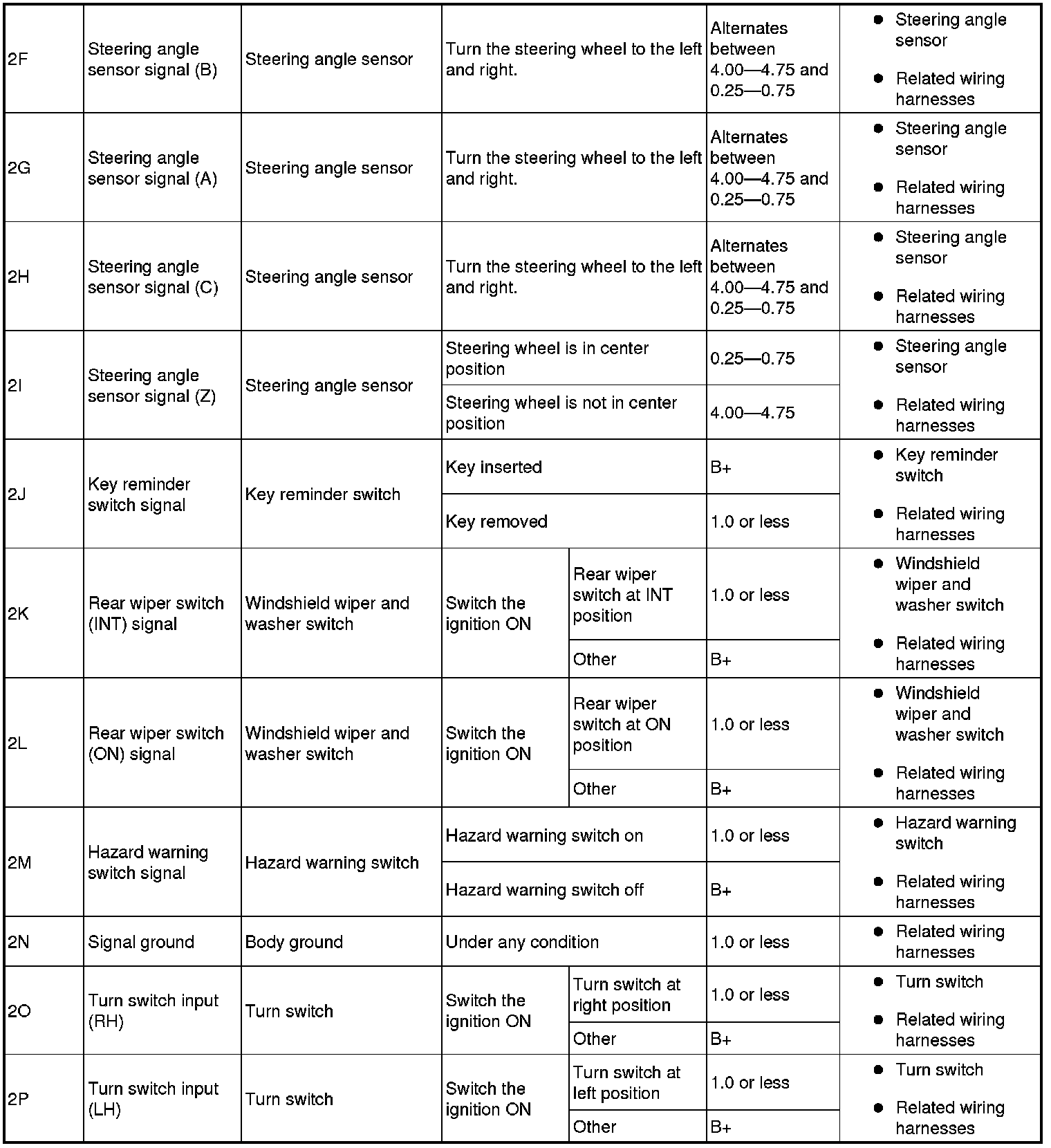 - Sliding door switch (LH) signal: 6E (+) -> body ground (-)