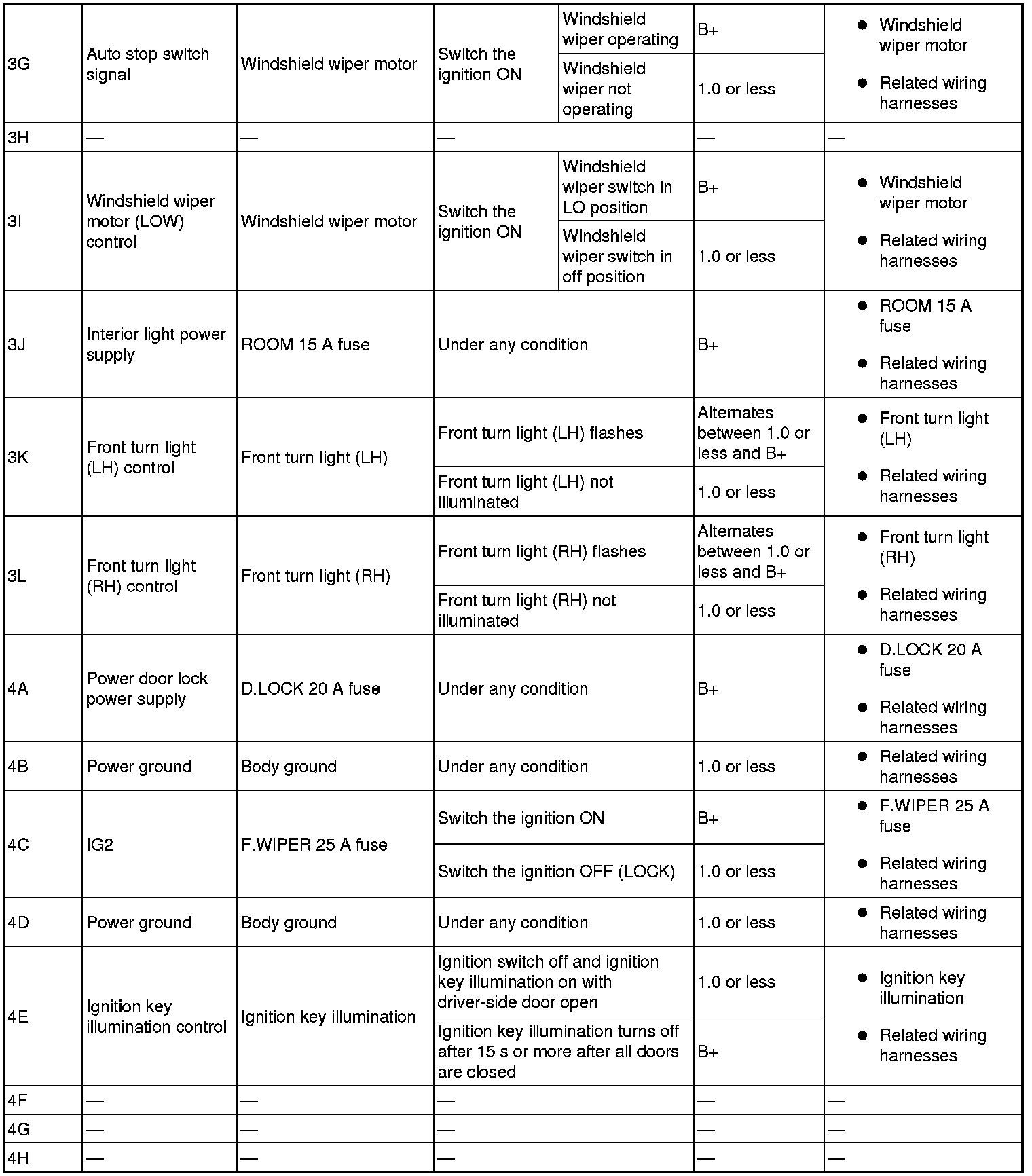 - Front door switch (passenger-side) signal: 6H (+) -> body ground (-)