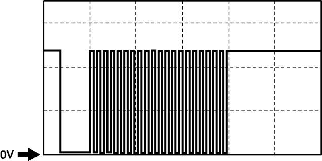 - Oscilloscope setting: 5 V/DIV (Y), 200 microsecond/DIV (X), DC range