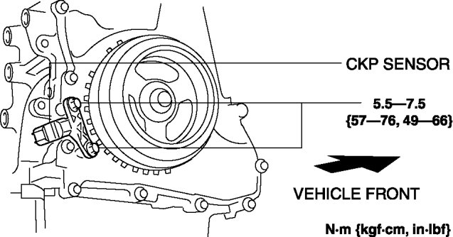 - Do not assemble the CKP sensor or change the installation position using any method other than the following. Otherwise, it could negatively affect engine controls, such as the ignition timing and fuel injection.