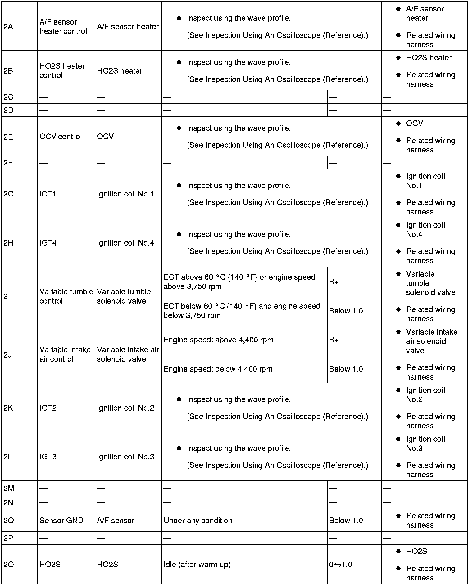 - IGT2(ignition coil No.2): 2K(+)-body ground(-)