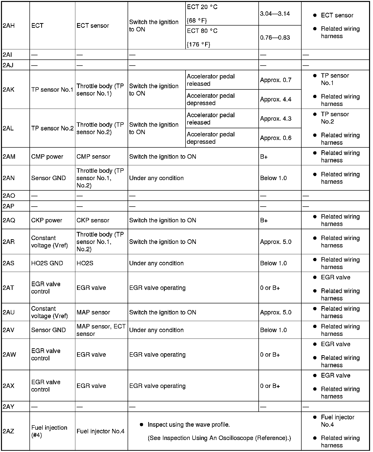 - Fuel Injection No.4: 2AZ(+)-body ground(-)