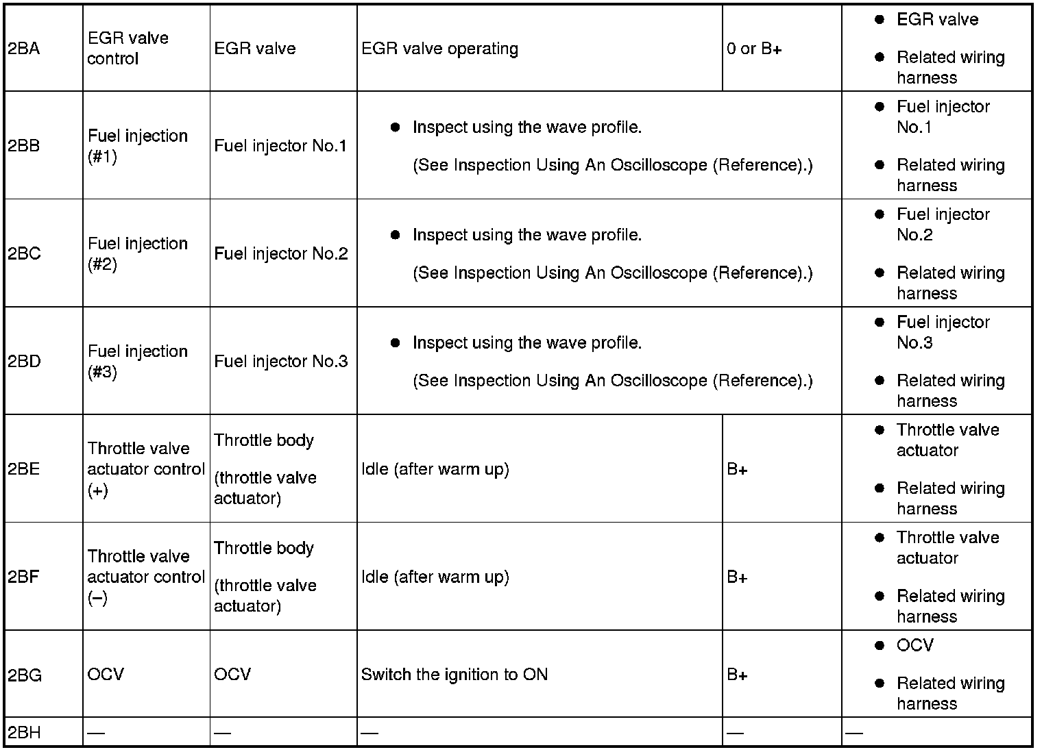 - Fuel Injection No.1: 2BB(+)-body ground(-)