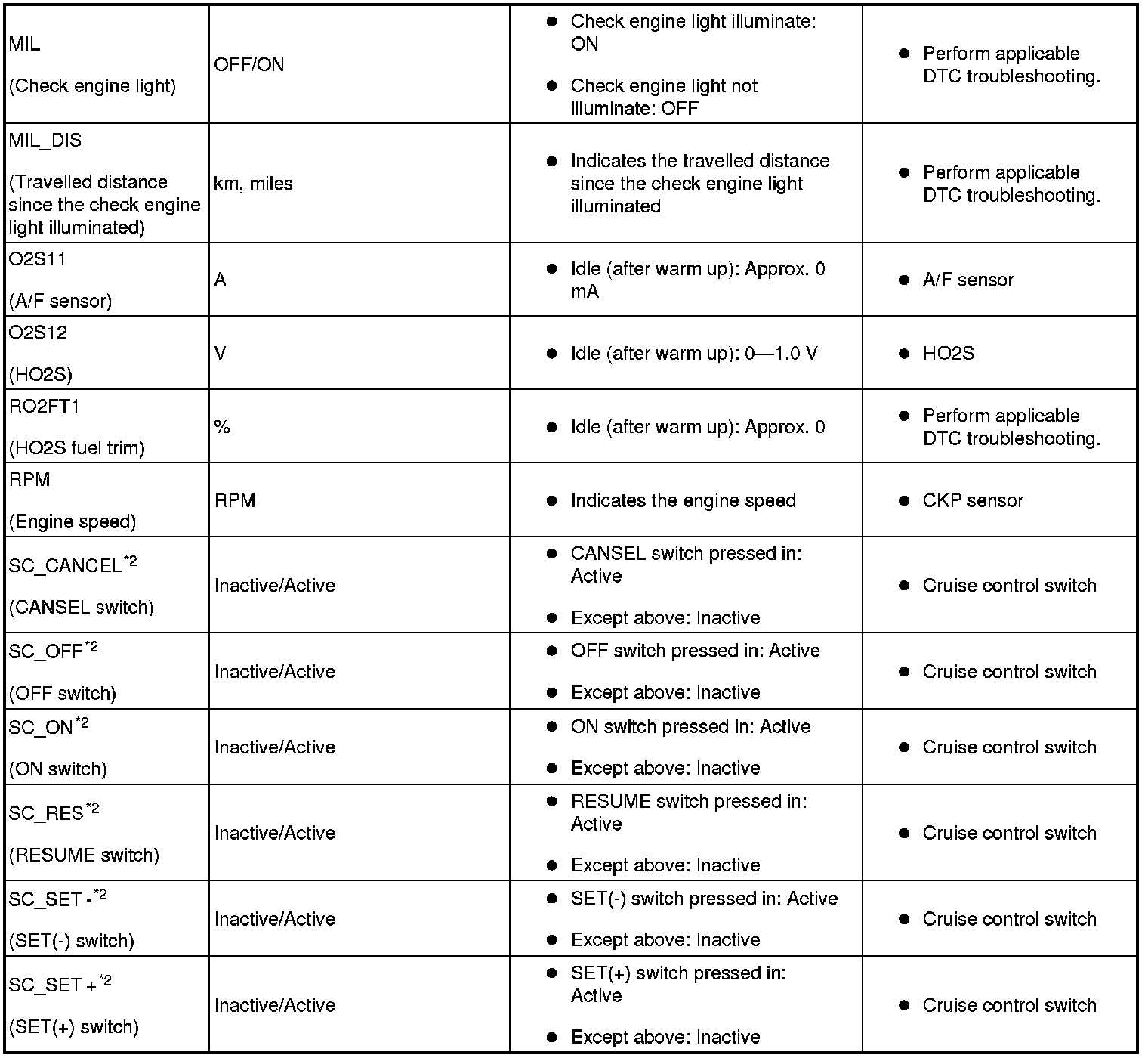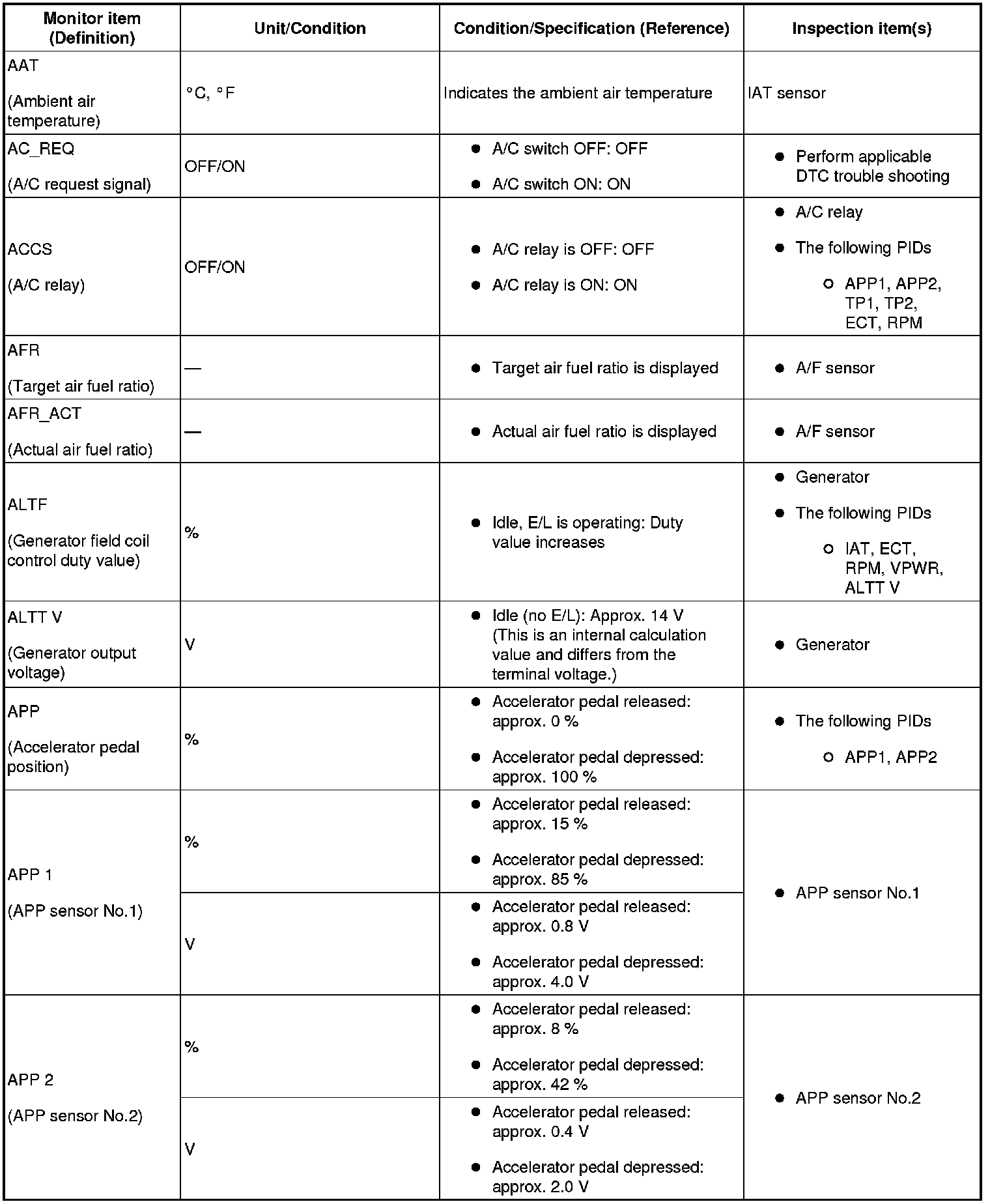 PID/DATA monitor table (reference)
