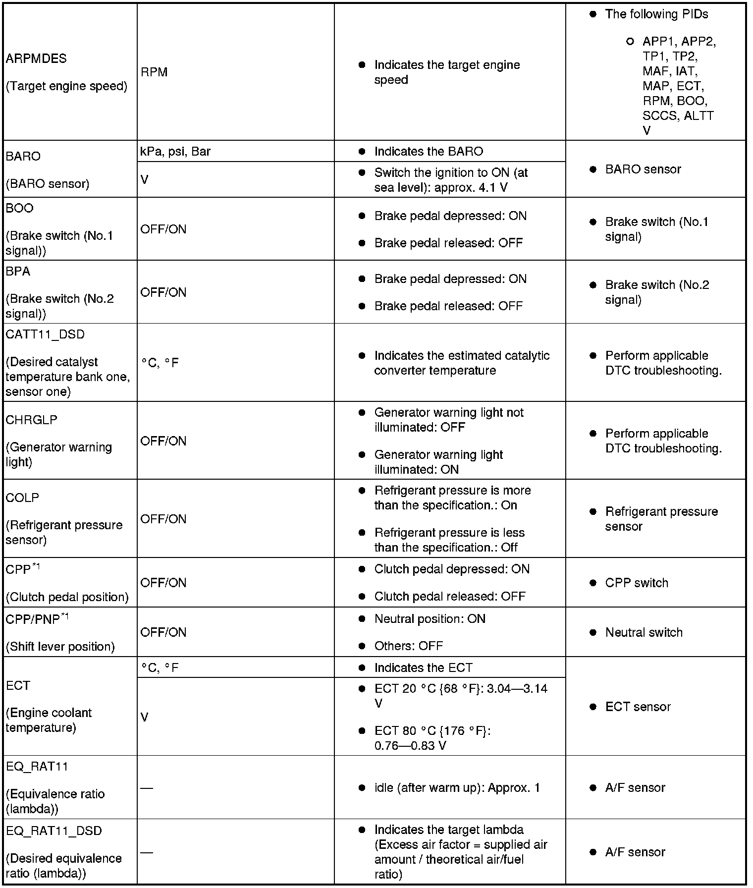 - Following PIDs are for the ATX models. If inspects for following PIDs, PID/Data Monitor Inspection