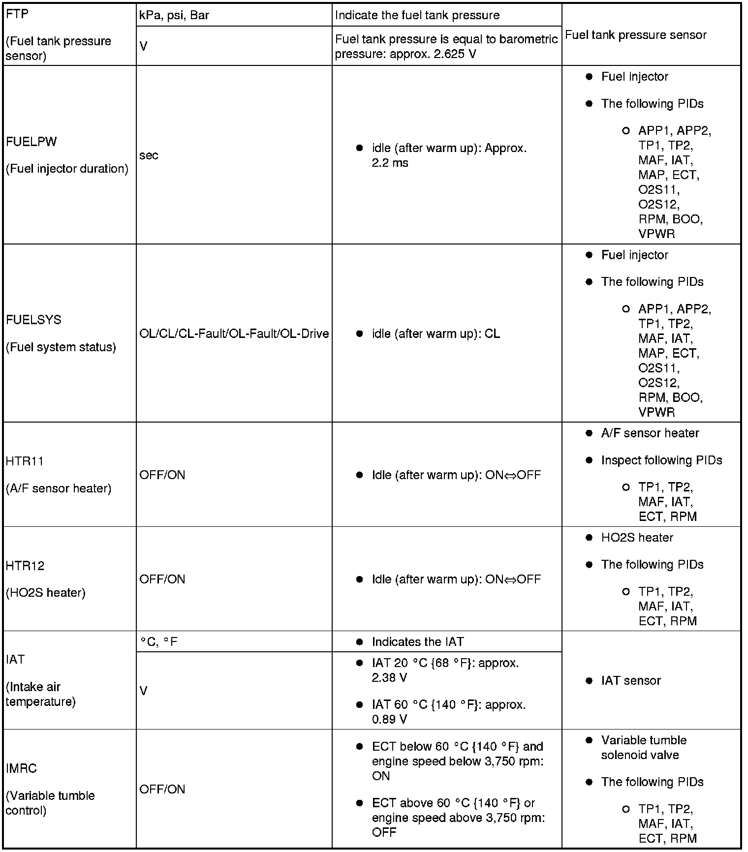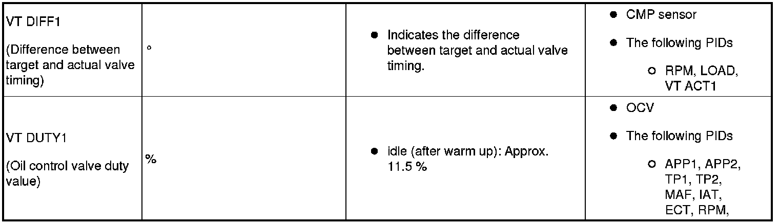 - ACCS, ALTF, ARPMDES, EVAPCP, EVAPCV, FAN1, FAN3, FP, IMRC, IMTV, INJ_1~4, SEGRP, Test, VT Duty1 wt