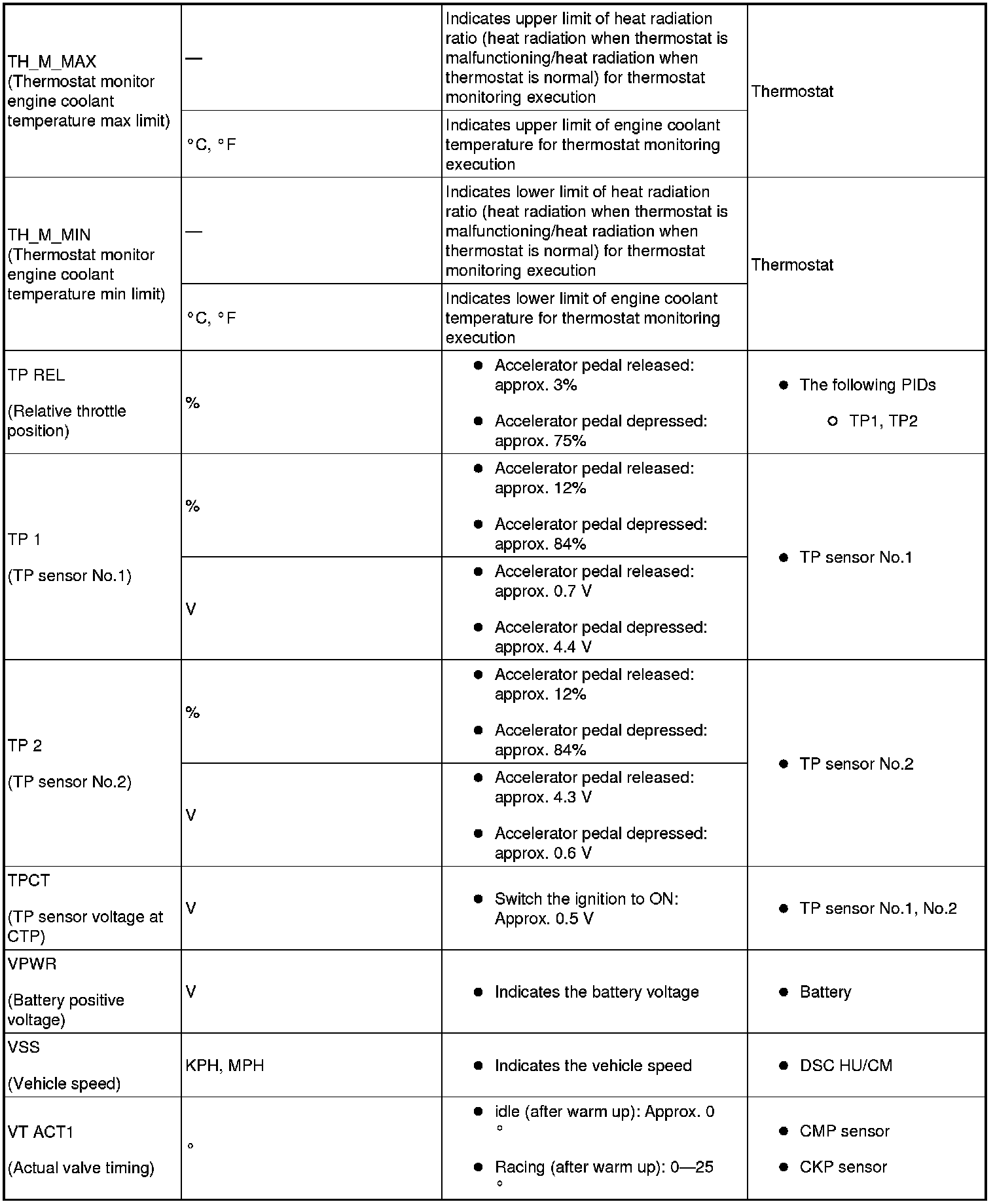- The PID/DATA MONITOR function monitors the calculated value of the input/output signals in the PCM. Therefore, an output device malfunction is not directly indicated as a malfunction of the monitored value for the output device. If a monitored value of an output device is out of specification, inspect the monitored value of the input device related to the output control.
