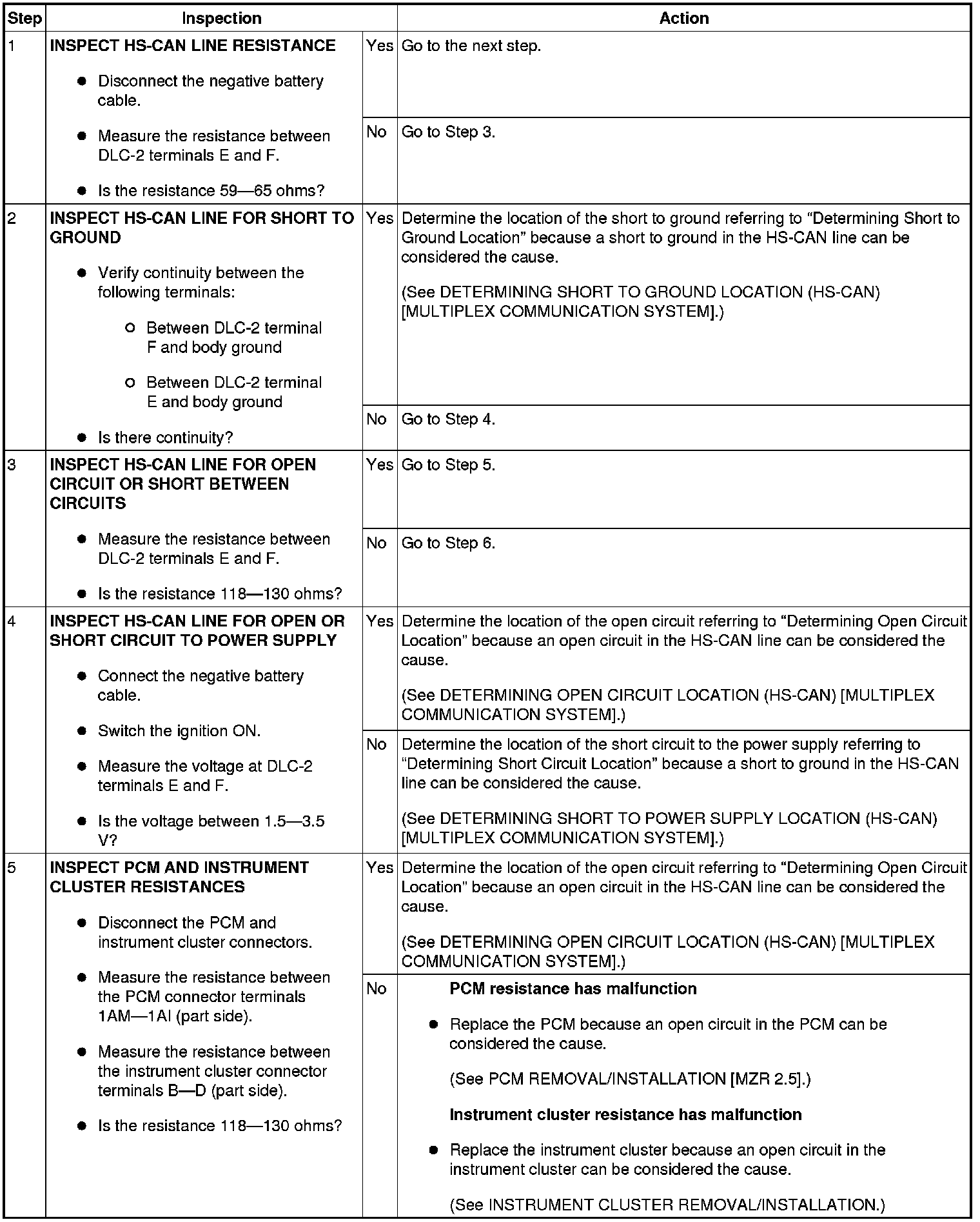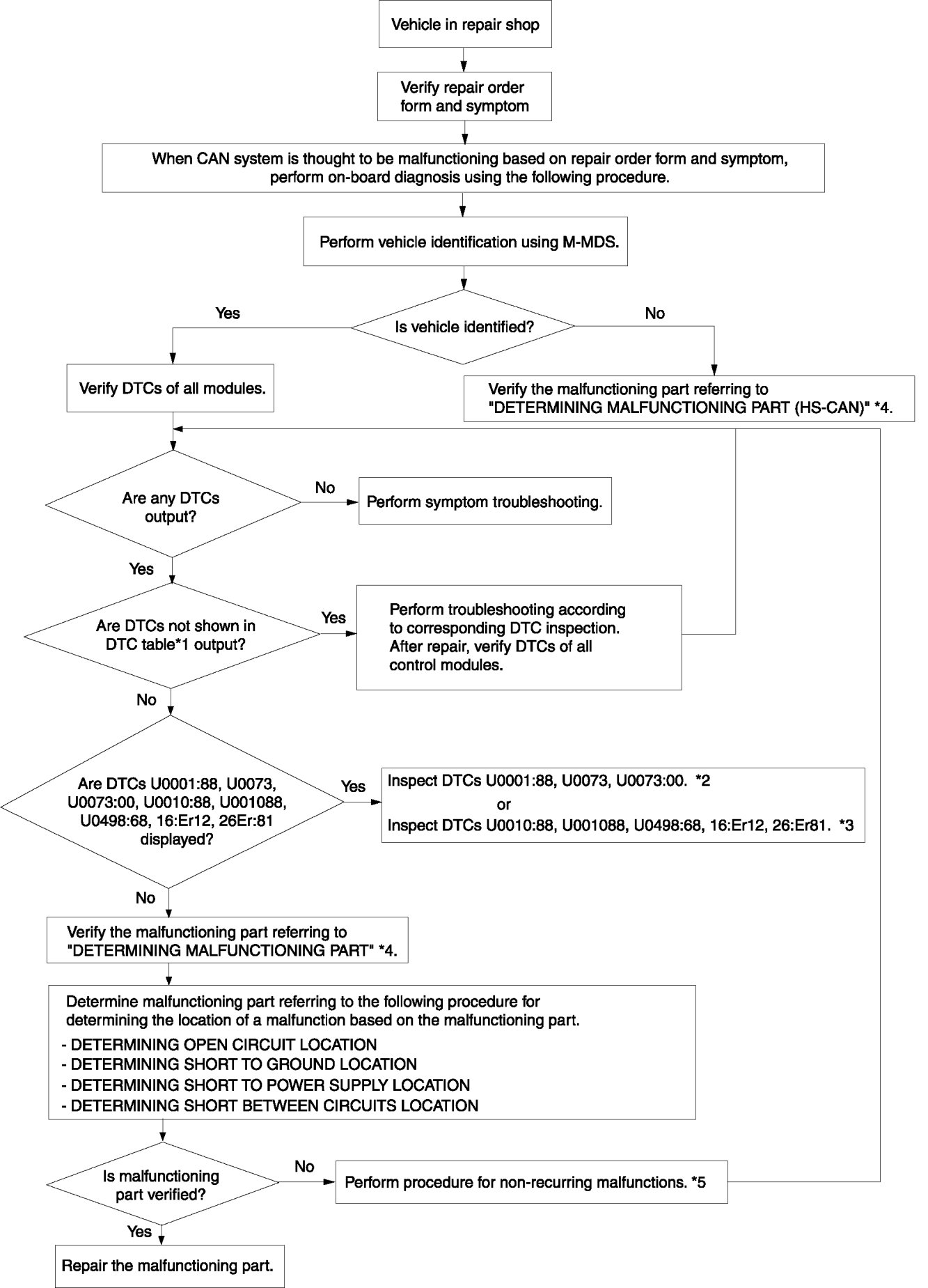 - If the vehicle identification cannot be done because the M-MDS vehicle identification is performed using the CAN system between the PCM and DLC-2, determine the malfunctioning part in the HS-CAN.