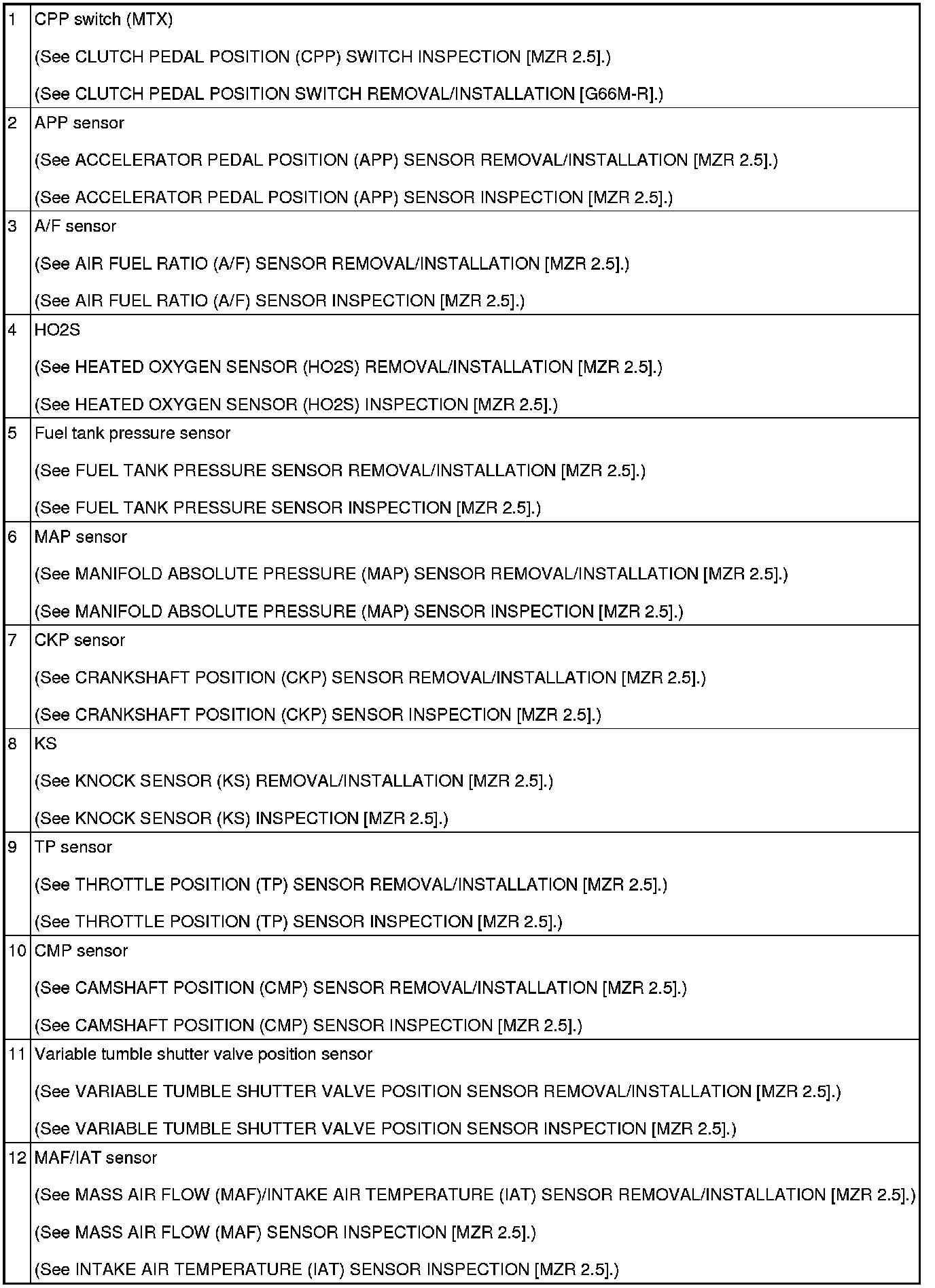 CONTROL SYSTEM LOCATION INDEX [MZR 2.5]