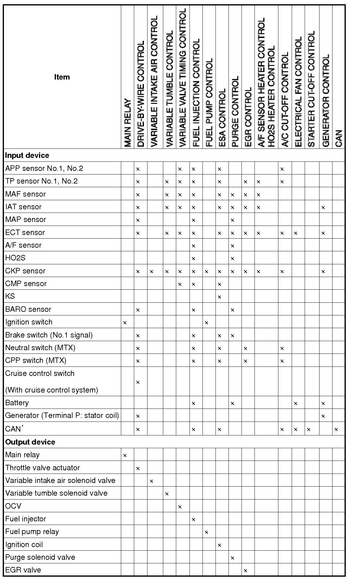 CONTROL SYSTEM DEVICE AND CONTROL RELATIONSHIP CHART [MZR 2.5]