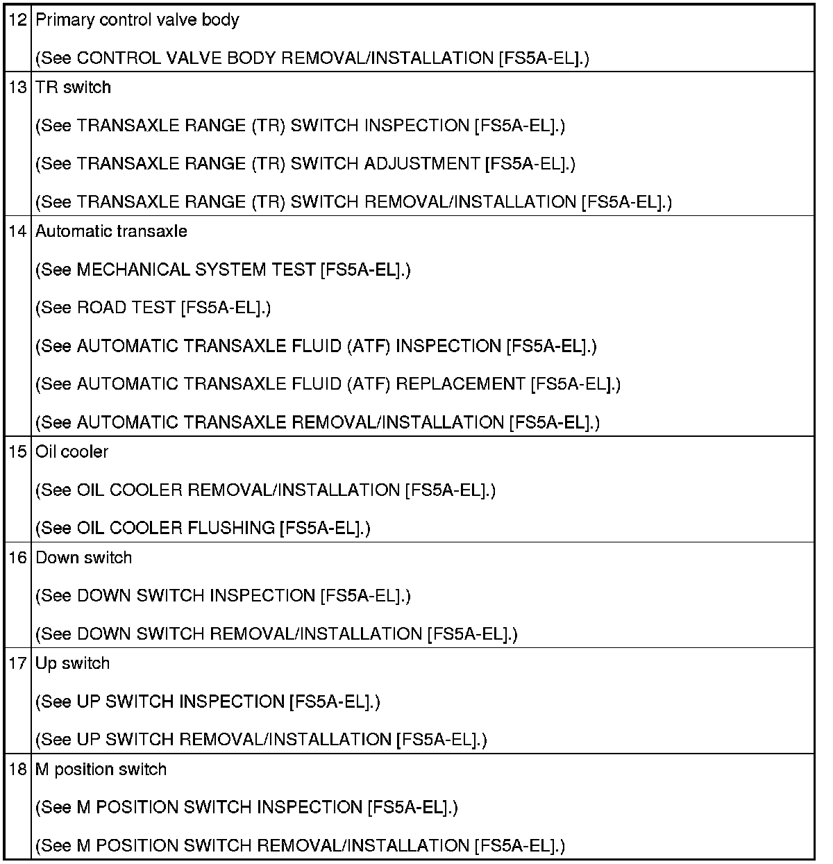 AUTOMATIC TRANSAXLE LOCATION INDEX [FS5A-EL]