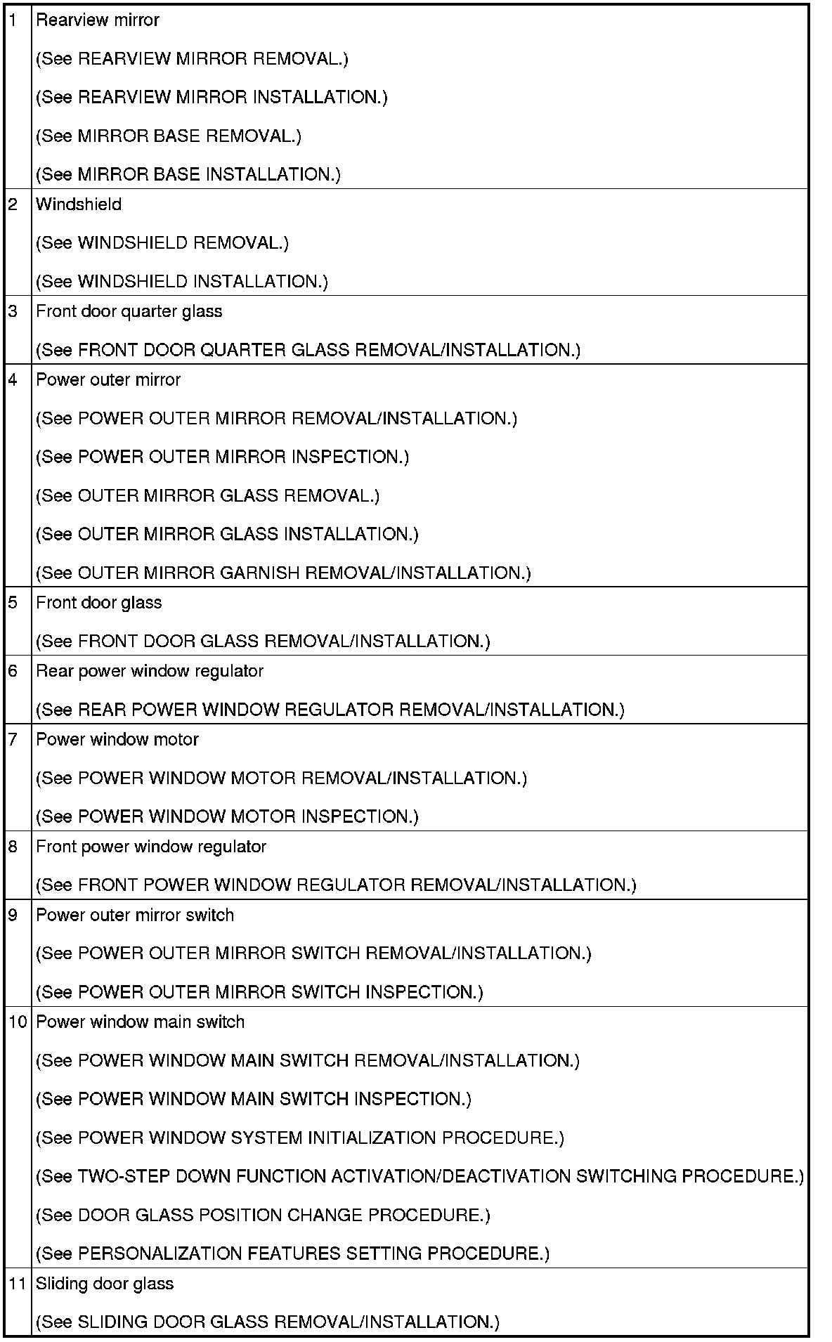 GLASS/WINDOWS/MIRRORS LOCATION INDEX